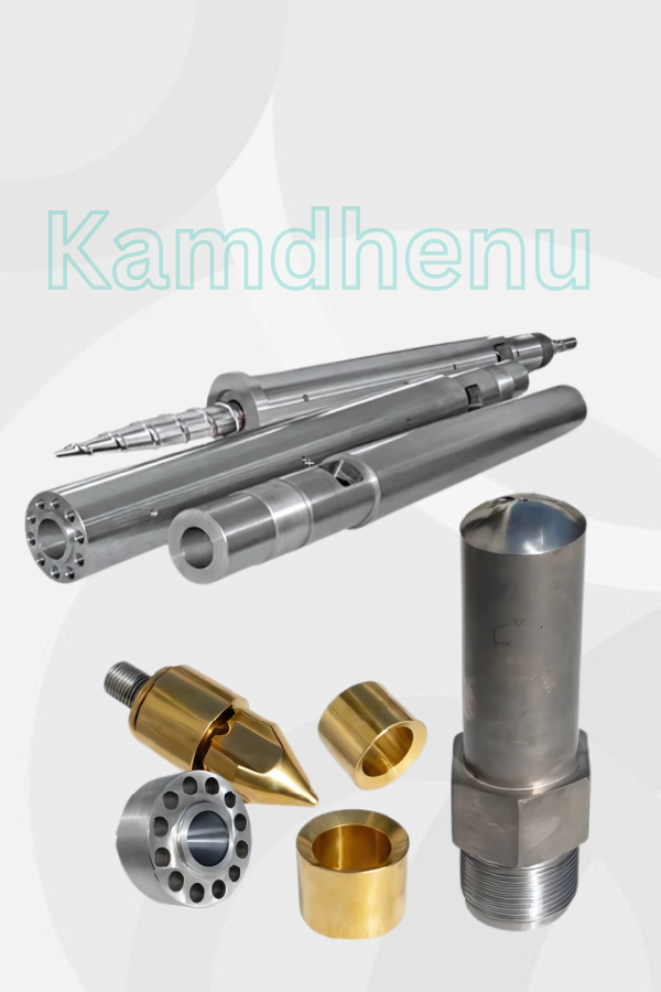 High-performance screw and barrel designed for efficient plasticizing, consistent melt quality, and long service life. Perfectly compatible with Kamdhenu machines for smooth and reliable operation.